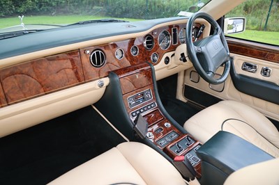 Specified in rare Iridium Green with Dark Green hood, Barley leather interior piped spruce Green, Spruce top roll, Conifer Wilton carpets, and Burr Walnut woodwork. The optional extras include; a pair of matching Rolls-Royce umbrellas mounted in the boot, interior lid, polished exterior mirror caps, and Rolls-Royce emblems stitched into each headrest. This stylish convertible is a joy to drive, almost gliding over the road surface in relative silence. The V8 engine provides effortless power to transport you in pure opulence and comfort. Be sure not to miss one of the rarest Rolls-Royce models currently available, especially such a well-sorted example and at a very attractive price point. Complete with the original book pack and an attractive leather-bound Rolls-Royce presentation book, photographically documenting the car's creation at every stage at the factory in Crewe, from bare shell to finished article