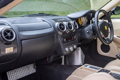 The specification of this car is equally as impressive. Whilst being in possibly the best colour of Nero Daytona for a F430, a welcome departure from red, it comes with such options as Nero carpets, yellow brake callipers, Daytona style seats finished in Crema with Nero leather stripes, 6 CD changer, heated front seats, Scuderia Ferrari front wing shields, radionavi system and Bluetooth, Navtrak antitheft system, front and rear parking sensors, leather headlining, high power Hi-Fi with subwoofer, seat stitching and a CTek battery regulator. It sits on a set of correct Pirelli P Zero tyres on the correct colour alloy wheels with Ferrari emblem centre caps. All in all, possibly one of the best and most original Ferrari F430 F1s to be offered at this moment in time.