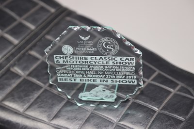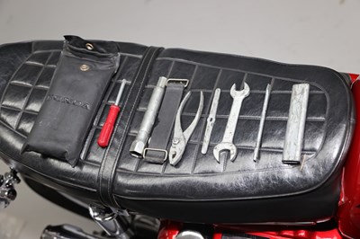 The vendor having owned two CB750 Sandcasts previously in Candy Blue Green wanted a Ruby Red one so changed the colour of this bike in 2014. All the paintwork has recently been refreshed 3 months ago with new decals, badges and fuel tank trims to bring the bike to as close to new as possible. This bike has been in regular Spring and Summer use only and never used in wet weather. It is stored in a dry centrally heated garage and as such requires no recommissioning, starts on the button and is fully ready to ride and enjoy. The original factory owner’s manual, toolkit in the correct tool bag, and special original plug ignition key, rare and difficult to find expensive items in their own right, are all present along with a spare ignition key. Also present is a copy of an original period road test of the early CB750 and a catalogue from American CB750 Specialist Vic World from California detailing a bolt by bolt restoration of an original Sandcast using new old stock parts throughout. The bike has won several concourse judging awards, one as recently as Easter 2024. These trophies accompany the bike along with two Regatta Fleece Jackets showing the Honda 750 Four logo.