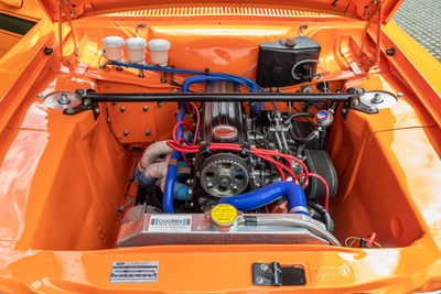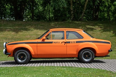 This very individual Ford Escort MK1, which has been made into a Mexico Evocation at great expense, was first registered overseas on 1/1/1971 and registered in the UK on 22/6/2017. It is finished in a very striking colour of Orange with a Black interior and full Mexico livery. An amazing looking car but this is only where it starts, as the specification and individuality are where it is really at. The vendor has informed us of the following; fully rebuilt 2.0 Pinto powerplant, full metal body prep and fresh paintwork, Mazda 6-speed gearbox, Cosworth disc brake conversion, coil over front suspension, adjustable bias brake pedal box, 4x rally style front spot lights, Compomotive 4-spoke RS style alloys, quick release steering wheel, Pro-Flow fuel line gauge, high performance hoses, uprated rear differential, front suspension brace, detailed engine bay, twin 40’s carburettors, polybushed all round, GPS speedometer, new RS style front seats, twin racing dash pod, electric start with power cut off, full harness seat belts and bonnet catches.
