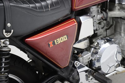 The Kawasaki Z1300 is a standard motorcycle unusual for its large-displacement 1286 cc inline -six engine made by Kawasaki from 1979 to 1989. The Z1300 has six cylinders, water cooling, and shaft drive. The undersquare stroke of 71 mm (2.8 in) and bore of 62 mm (2.4 in) kept the engine width acceptable, but the high piston speed limited the maximum rpm figure. A large-displacement motorcycle packed with standard features, such as a rectangular headlight up front, a one-piece dual seat with a passenger grab rail, a dual exhaust system with a muffler on each side, side-mounted rear shocks, and seven-spoke lightweight aluminium wheels. At the time only Honda and Benelli were producing 6 cylinder bikes so Kawasaki decided to produce one and the Z1300 is the result.